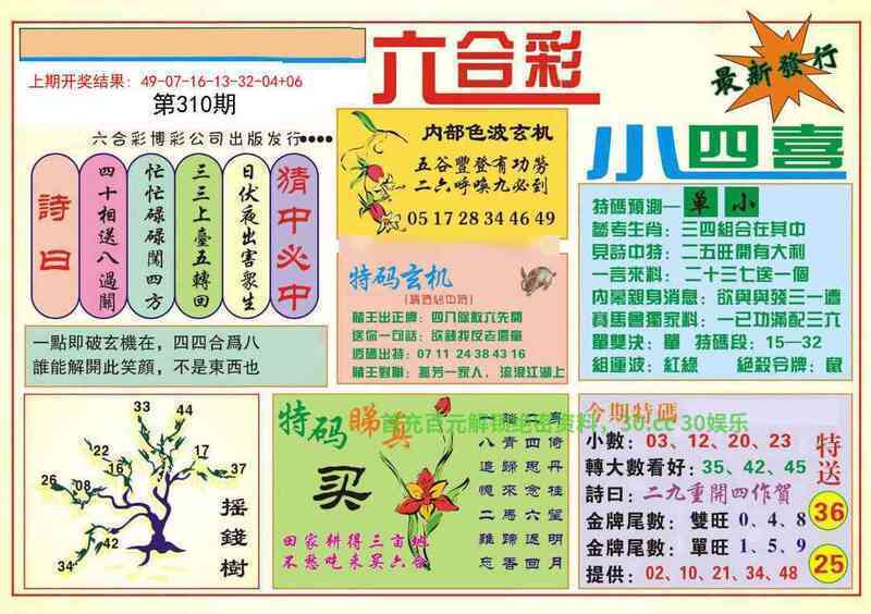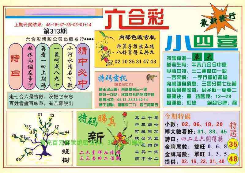 314期:大小单双句/另东方心经/凤凰马经